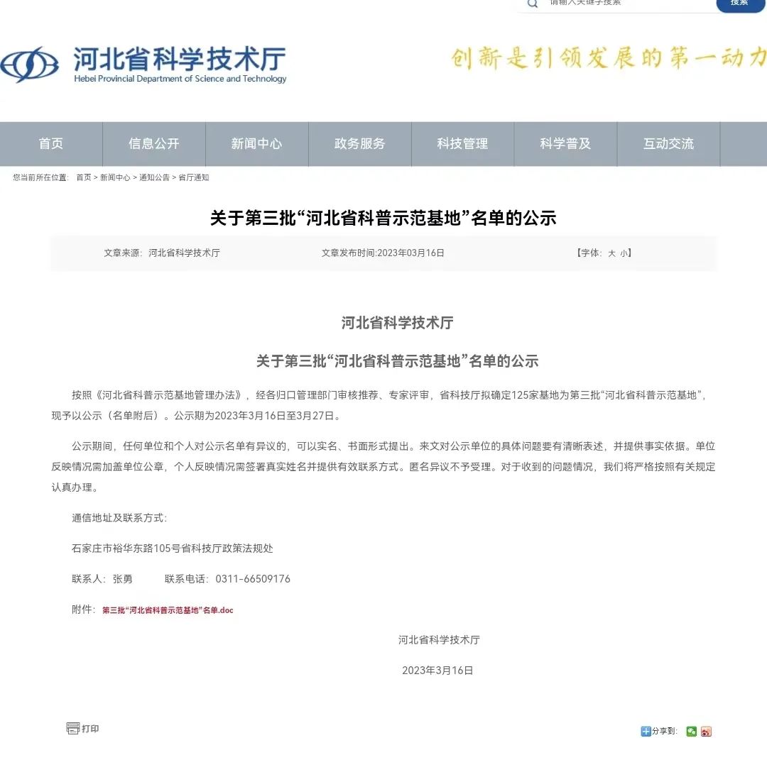 華維公司獲批“河北省科普示范基地”